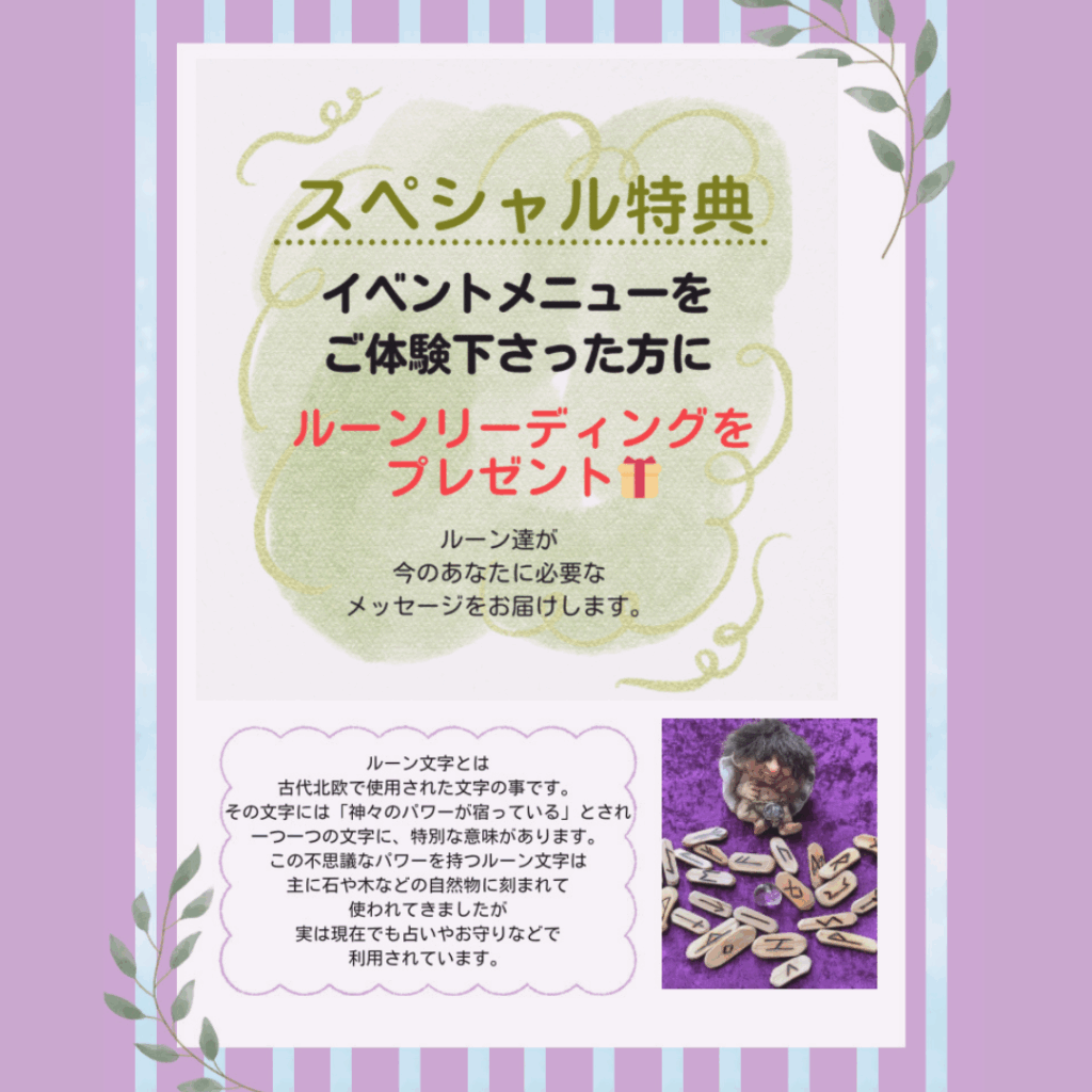 そして、イベントメニューをご体験下さった方への特典として、ルーンリーディングをプレゼントさせて頂きます🎁